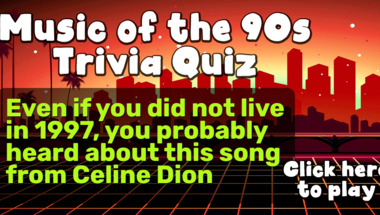 5/10 is what people on average are scoring in this 1990s Hits quiz so far. Are you ready to answer questions like "One of the most popular hits in 1993 was this song performed by Billy Ray Cyrus" and "Even if you did not live in 1997, you probably heard about this song from Celine Dion"