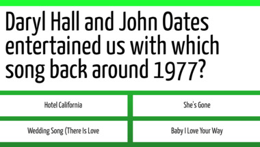 4/10 is what people on average are scoring in this trivia quiz so far. Are you ready to answer questions like "The Hollies entertained us with which song back around 1975?" and "Daryl Hall and John Oates entertained us with which song back around 1977?"