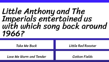 4/10 is what people on average are scoring in this 1960s Songs quiz so far. Are you ready to answer questions like "Chubby Checker entertained us with which song back around 1963?" and "The Kinks entertained us with which song back around 1966?"