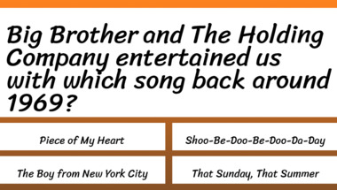 If you can answer "The Beach Boys entertained us with which song back around 1965?" and maybe even "Procol Harum entertained us with which song back around 1968?" there is a good chance that you're going to beat the average score of 3/10 in this 1960s Songs quiz