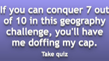 6/10 is the score to beat in this Geography quiz to put yourself over the average quiz taker. But you're probably going to be able to answer questions "Where would you come across the Storbaelt bridge?" and "In which country can you visit the city of Lisboa?" easy!