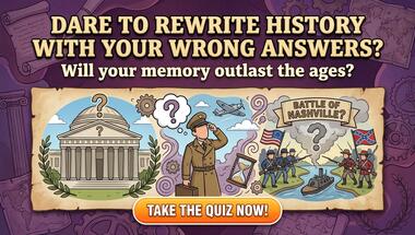 7/10 is the score to beat in this History 29-03-2025 quiz to put yourself over the average quiz taker. But you're probably going to be able to answer questions "In what war was the 'Battle of Nashville'?" and "What did Charles Blondin do at the Niagara Falls in 1890? " easy!