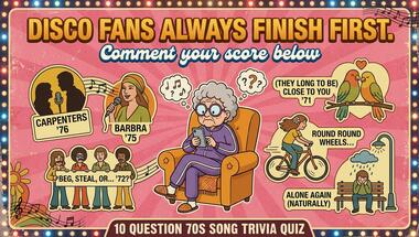 7/10 is the score to beat in this 1970s songs quiz to put yourself over the average quiz taker. But you're probably going to be able to answer questions "The New Seekers were going to beg, steal or what in 1972?" and "Barbra Streisand sang which of these songs back in 1975?" easy!