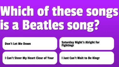 5/10 is what people on average are scoring in this trivia quiz so far. Are you ready to answer questions like "Which of these songs is a Beatles song?" and "Which of these songs is a Beatles song?"